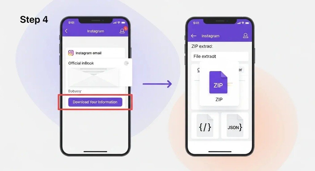 Instagram does not show unfollowers, inactive followers, or ghost followers directly. To analyze this information safely, Instagram allows users to download their official account data in a structured JSON file.