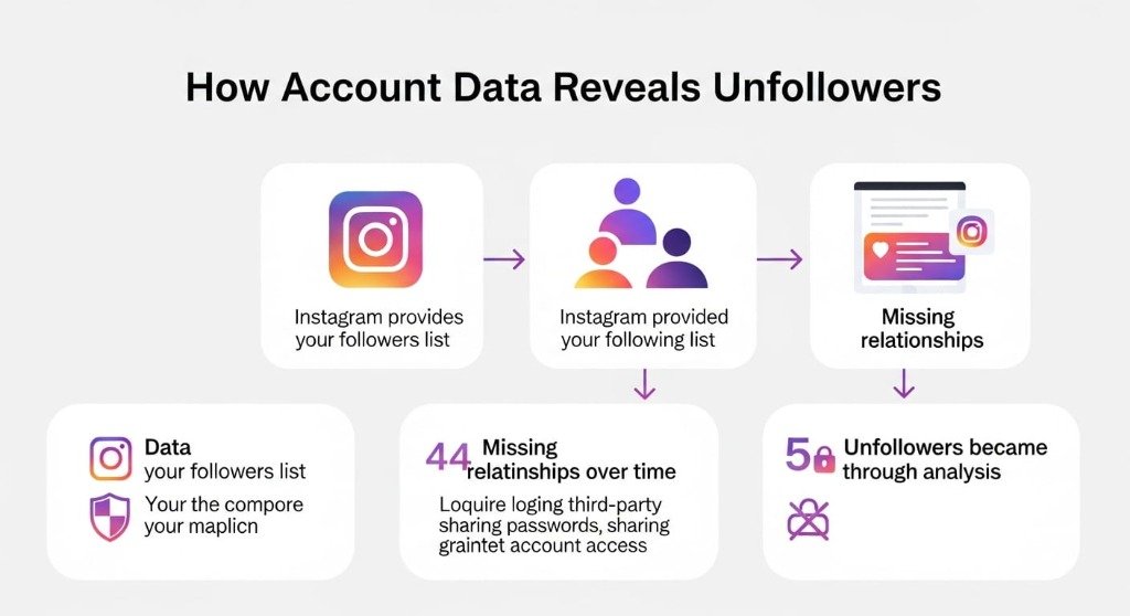 Instagram does not show unfollowers or ghost followers by design. By downloading and analyzing your own data, you can safely identify these patterns without risking account security.